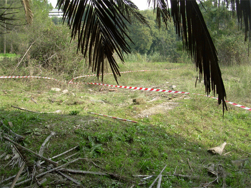 | Àrea excavada, la seva problemàtica i la informació obtinguda L’àrea excava es va delimitar després d’una prospecció i l’acceptació per part de tota la classe. En un moment inicial només es podia observar una petita part del que després seria tota l’estructura completa de l’edifici (foto), tal com es pot veure en aquesta foto. Així doncs, agafant com a referència un xiprers en la vessant oest del jaciment, es va delimitar un espai de mida rectangular, agafant la distància dels xiprers a lo ample i de llarg una mica més que d’ample. Pel que fa a les problemàtiques que vam començar a trobar, podem parlar-ne de dos tipus, elements exteriors a l’estructura i elements en el seu interior. Pel que fa a l’exterior ens trobem amb diversos elements com la palmera plantada a la vessant oest tirant cap a sud (foto). Aquesta palmera ens pot fer pensar que formava part del jardí de la casa, ara bé, és perceptible que la palmera està massa enganxada al mur, per la qual cosa fa discrepar sobre el fet de si realment formava part del jardí de la casa o be si és un afegit posterior a l’enderrocament, posem però, que no té massa sentit pensar que la palmera fou plantada després, per no dir que no en té cap de sentit, per tant ens quedem amb la hipòtesis que formava part del jardí de la casa, i que el més segur, és que fou plantada artificialment, ja que no correspon massa amb el medi natural de l’entorn. Un altre element són els esbarzers que hi ha a la vessant nord, ja que no s’ha pogut excavar i s’hauria d’estudiar aquella zona per veure si hi havia alguna part d’estructura i així poder delimitar la superfície total de l’estructura. Més enllà dels esbarzers hi podem trobar un camp agrícola, el qual segurament, tot el terreny ja ha patit una transformació de l’home i per tant serà difícil determinar l’estructura a no sé, que es trobi sota els esbarzers i d’ací la seva importància (foto esbarzers i camp agrícola). Pel que fa al nivell intern, l’element més característic és la falta d’estructures que dividissin l’espai habitable en habitacions o similars. |